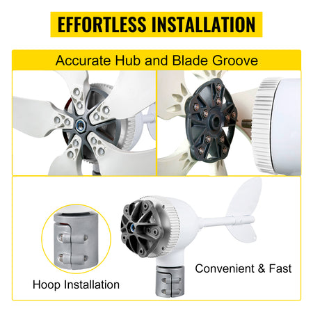 Unser Windkraftgenerator verfügt über eine Ringinstallation, ein doppelseitiges Rotorblattdesign und eine präzise Nabe und Rotorblattnut. Diese verbesserte Windkraftanlage bietet Ihnen eine bequeme und schnelle Montage, vermeidet die falsche Installation des Flanschtyps und spart Ihnen mehr Aufwand und Zeit.